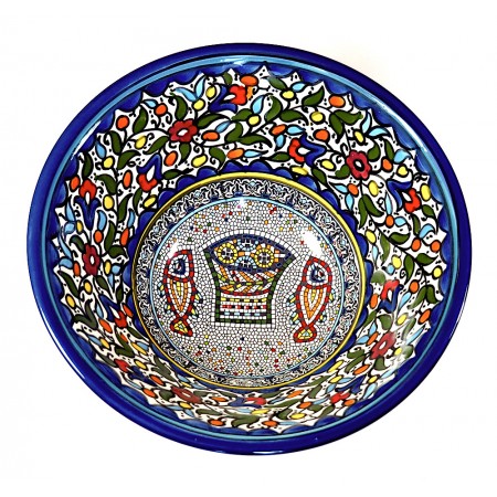 Saladier en céramique avec poissons peints à la main. Diamètre : 25 cm - Hauteur : 12 cm.
