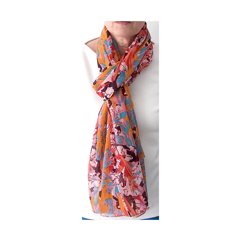 Quick view Ajouter au panier Echarpe modal feuilles... Prix 35,00 € Foulard 100% modal (fibre de cellulose) feuilles orangées. Dimensions : 200 x 70 cm.
